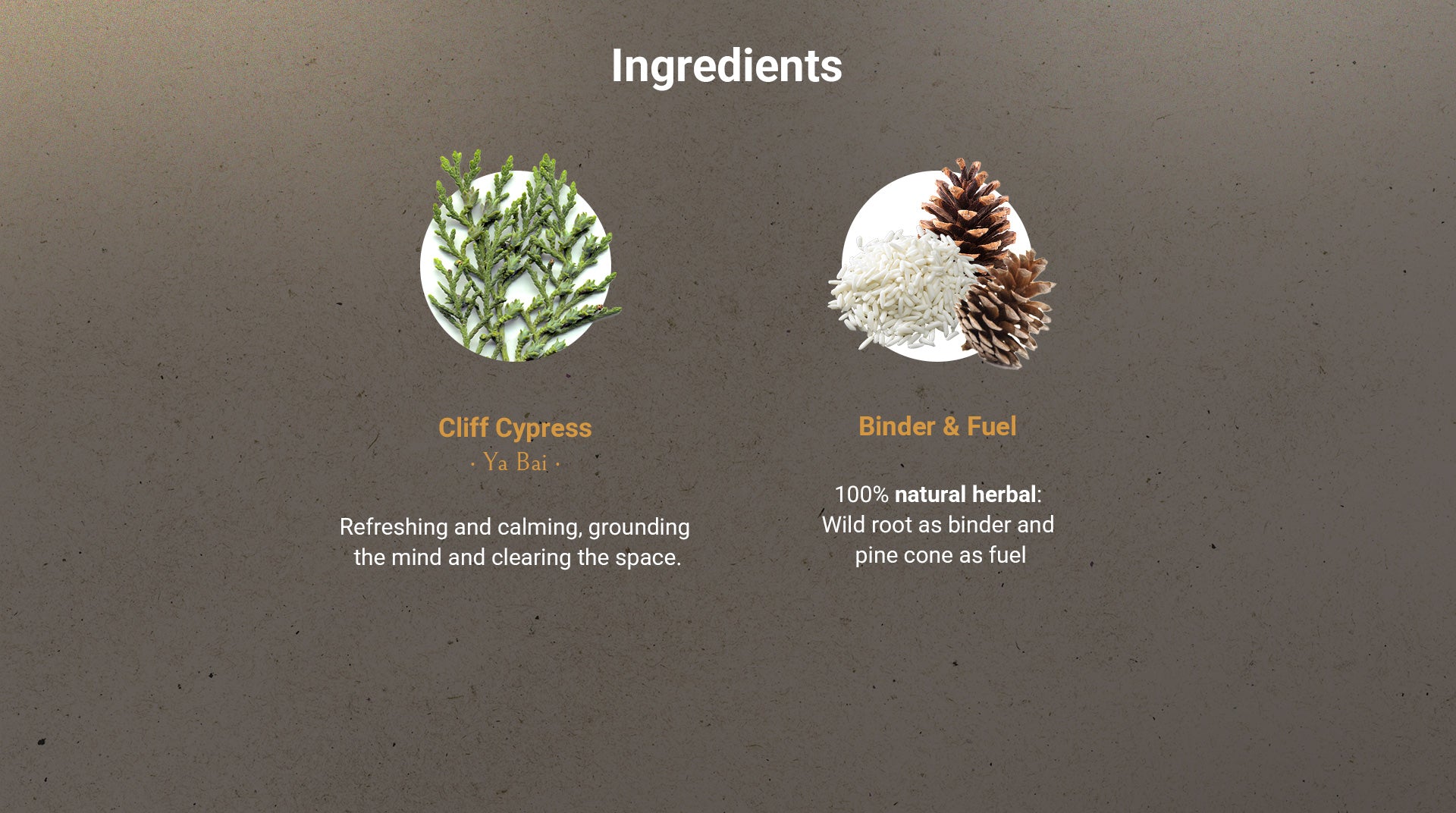 Key Ingredients: Cliff Cypress(Ya Bai)— a woody botanical traditionally used in incense making.